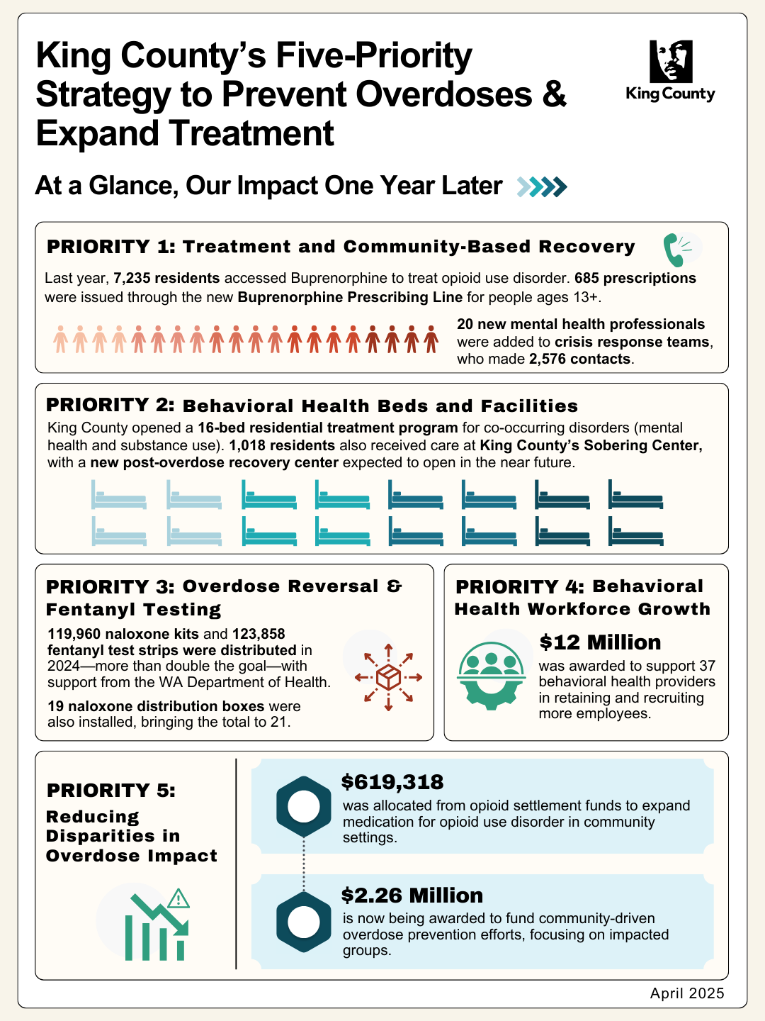 This comprehensive approach highlights King County’s dedication to tackling the opioid crisis as well as the teamwork needed to significantly advance public health and safety.